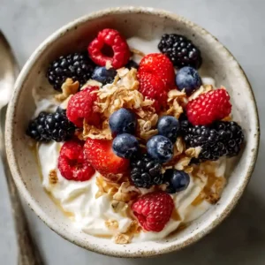 This Greek yogurt bowl with berries proves that healthy eating can be simple and delicious. With just a few ingredients and no cooking required, you’ll have a nourishing dish ready in minutes. It’s a reliable go-to you’ll come back to again and again.