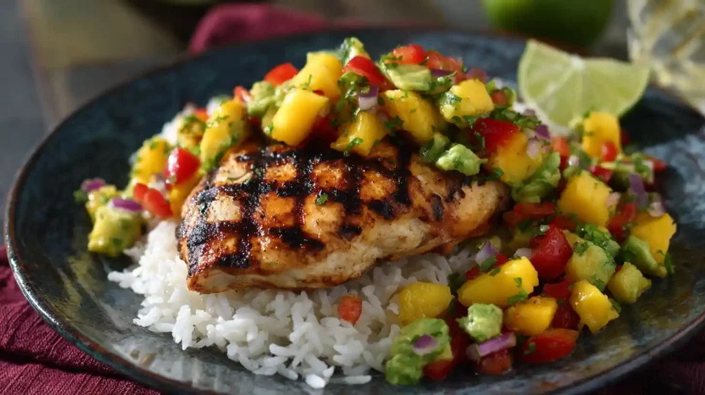 Grilled Honey Lime Chicken with Avocado Mango Salsa