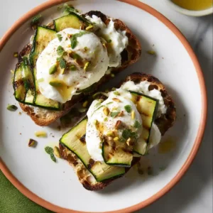 This Grilled Zucchini and Burrata Toast is a simple yet elegant dish that brings together smoky grilled zucchini, creamy burrata, crunchy pistachios, and a touch of sweet heat from hot honey. It’s perfect for a light lunch, appetizer, or elevated snack that feels restaurant-worthy but takes minimal effort.