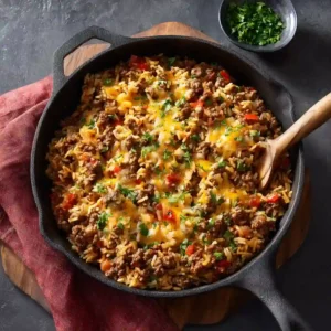 Ground Beef and Rice Skillet is the ultimate one-pan comfort meal. It’s simple, flavorful, and perfect for feeding a hungry family without spending hours in the kitchen. Once you try it, it’s sure to become a regular favorite.