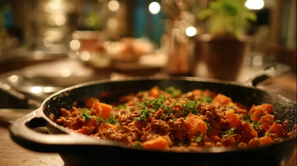 Ground Turkey Sweet Potato Skillet is a wholesome, one-pan meal that brings together lean protein and naturally sweet, tender vegetables. It’s perfect for busy weeknights when you want something nourishing, simple, and full of flavor without spending hours in the kitchen.