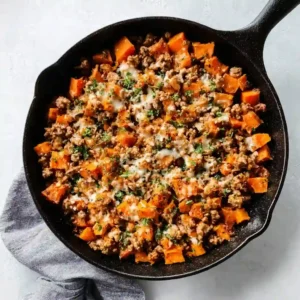 This Ground Turkey Sweet Potato Skillet is packed with comforting flavors and balanced nutrition. It’s quick to prepare, family-friendly, and made with simple pantry ingredients. The combination of savory turkey, soft sweet potatoes, and melted cheese creates a satisfying dish that works for lunch or dinner. Plus, it’s easily customizable for different diets.