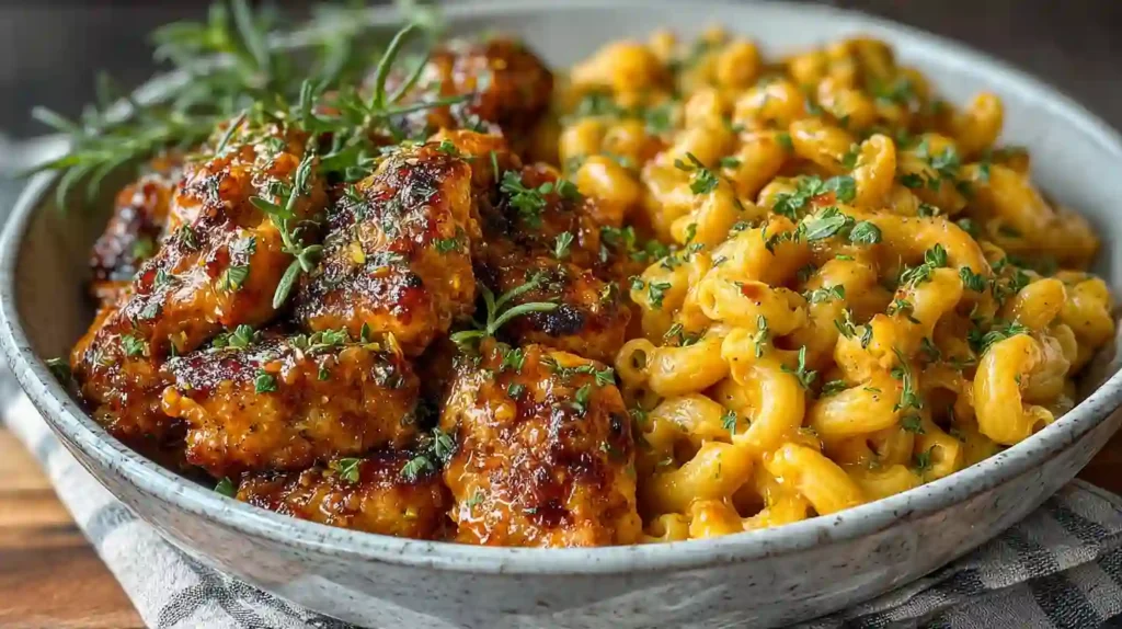 High Protein Honey Garlic Butter Chicken with Mac & Cheese is a rich, satisfying meal that combines juicy chicken coated in a sweet garlic butter sauce with creamy homemade macaroni and cheese. This comforting dish delivers bold flavor and plenty of protein, making it perfect for hearty dinners or meal prep. The combination of tender chicken, honey garlic butter glaze, and creamy cheesy pasta creates an irresistible balance of sweet, savory, and creamy textures.
