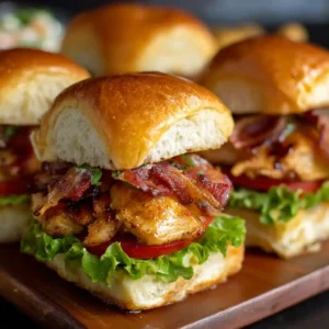 Honey Mustard BLT Chicken Sliders are the ultimate mini sandwich packed with juicy grilled chicken, crispy turkey bacon, fresh vegetables, and a sweet tangy honey mustard sauce. These sliders are perfect for parties, game days, family dinners, or casual gatherings. The combination of smoky chicken, melted cheese, and crunchy lettuce creates a delicious bite-sized meal that’s easy to prepare and even easier to enjoy.