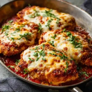 Keto Chicken Parmesan is a low-carb version of the classic Italian favorite, featuring crispy almond flour–coated chicken topped with rich marinara sauce and melted mozzarella cheese. This keto-friendly dish delivers the same comforting flavors of traditional chicken parmesan while keeping carbs low and protein high.