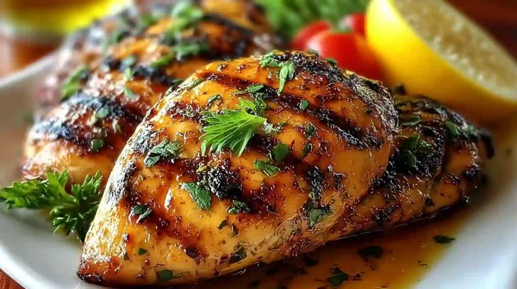 Marinating overnight produces the juiciest chicken. Pound the chicken breasts slightly for even cooking. Avoid flipping too often to get beautiful grill marks. Letting the chicken rest before slicing helps retain moisture.