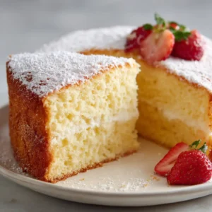 This Light Airy Sponge Cake is soft, fluffy, and perfectly delicate, making it ideal for layered desserts. With a cloud-like texture and lightly sweet flavor, it pairs beautifully with whipped cream, fresh strawberries, and raspberry jam.
