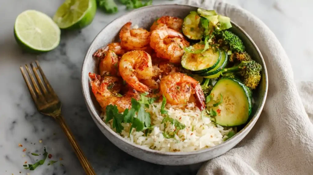 Loaded Spicy Shrimp Bowl is a bold, flavorful meal featuring tender shrimp coated in smoky spices, served over buttery jasmine rice with sautéed zucchini and broccoli. Finished with fresh lime and herbs, this bowl is vibrant, satisfying, and perfect for a quick weeknight dinner.
