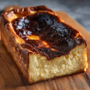 This Loaf Pan Basque Burnt Cheesecake is rich, creamy, and beautifully caramelized on top with a soft custardy center. Unlike traditional cheesecakes, this version embraces a deeply golden, almost “burnt” exterior that enhances the flavor with subtle bitterness and depth. Baked in a loaf pan, this Loaf Pan Basque Burnt Cheesecake is perfect for small gatherings or when you want a stunning dessert without a water bath.