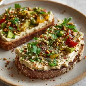Use thick, hearty bread so it holds up to the toppings. Roasted garlic or roasted red pepper hummus adds extra depth of flavor. For extra crunch, lightly toast the za’atar in a dry pan before sprinkling. If avoiding dairy, skip the feta or use a plant-based alternative.