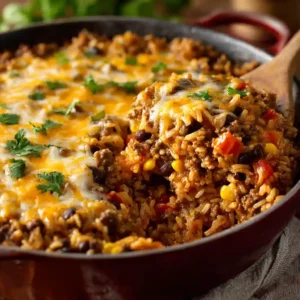 This Mexican Ground Beef Casserole with Rice is a hearty, one-pot meal packed with bold spices, tender ground beef, fluffy rice, beans, corn, and melted cheese. It’s a comforting dinner that combines classic Mexican-inspired flavors with simple pantry ingredients. Perfect for busy weeknights, this dish cooks in one pot and delivers a satisfying, family-friendly meal.