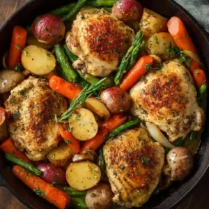 This dish is packed with comforting flavors and requires very little effort. The creamy ranch coating keeps the chicken moist, while the roasted vegetables turn perfectly tender and slightly crispy. It’s a family-friendly meal that’s both satisfying and simple to prepare in just one pan.