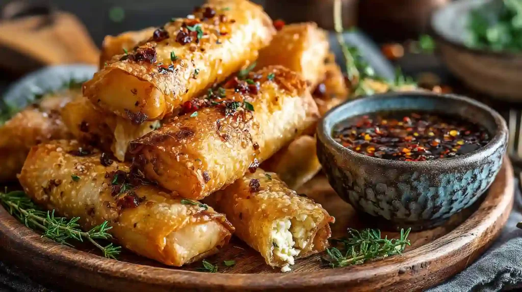 Oven Fried Feta Rolls with Chili Honey – Crispy & Irresistible