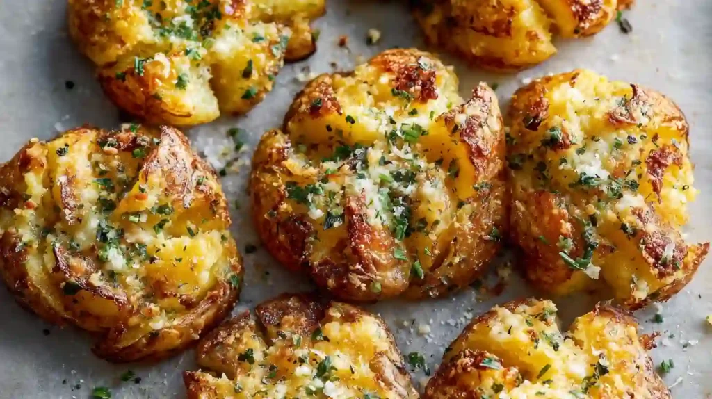 Crispy Garlic Butter Parmesan Smashed Potatoes