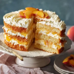 This Peaches and Cream Cake is a delightful dessert that combines simplicity with elegance. With its soft sponge layers, creamy filling, and fresh fruit topping, it’s a recipe you’ll return to again and again—especially during peach season.