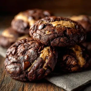 Peanut Butter Filled Brownie Cookies are rich, fudgy, and irresistibly indulgent. These cookies combine the deep chocolate flavor of brownies with a creamy peanut butter center, creating the perfect dessert for chocolate lovers.