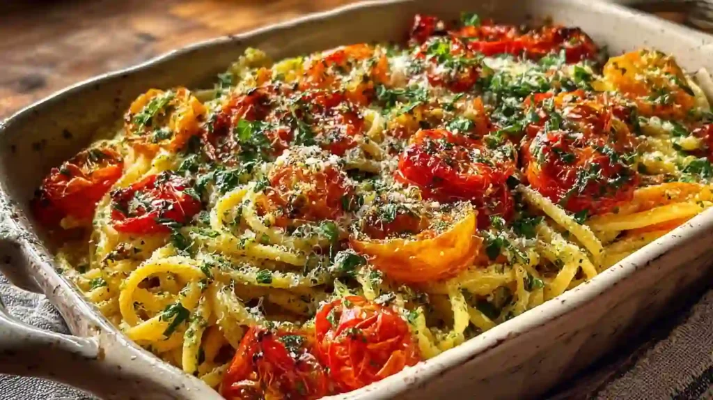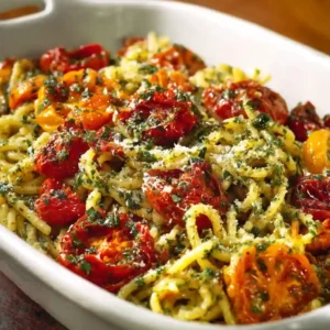 Pesto Pasta with Roasted Tomatoes is a vibrant, fresh, and comforting dish that combines sweet blistered cherry tomatoes with creamy pesto sauce. This Pesto Pasta with Roasted Tomatoes recipe is simple yet elegant, making it perfect for weeknight dinners or easy entertaining. The roasted tomatoes add a burst of natural sweetness that pairs beautifully with basil pesto and tender spaghetti.