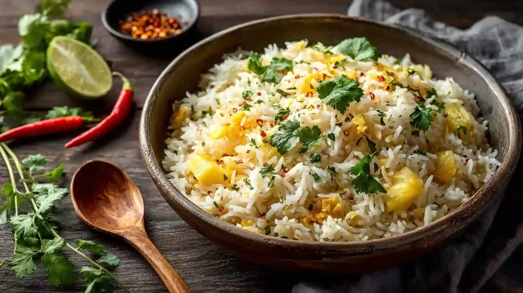 - Taste and adjust salt if needed. Serve warm and enjoy this flavorful Pineapple Rice Recipe.