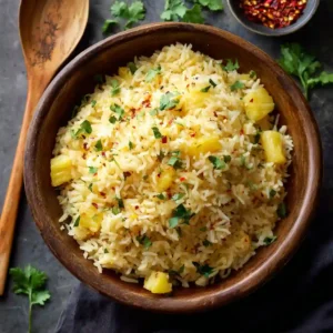 This Pineapple Rice Recipe is the perfect balance of sweet, savory, and slightly spicy flavors. Made with fragrant jasmine or basmati rice simmered in pineapple juice, it’s a vibrant side dish that pairs beautifully with grilled meats, seafood, or vegetarian mains. If you’re looking for an easy tropical rice dish that feels special but takes minimal effort, this Pineapple Rice Recipe will quickly become a favorite.