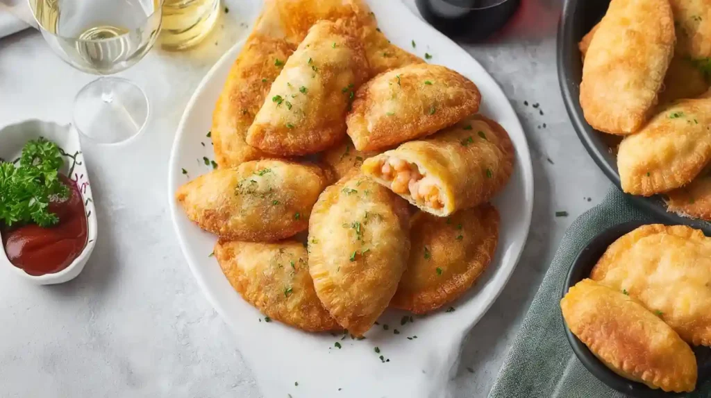 Portuguese shrimp turnovers are golden, crunchy, and filled with a rich, savory shrimp cream. The dough is soft yet sturdy, the filling is smooth and aromatic, and the turnovers fry up beautifully every time. They’re freezer-friendly, crowd-pleasing, and perfect for entertaining.