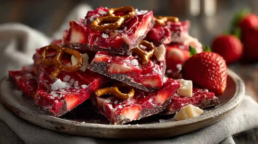 This recipe is incredibly simple yet packed with flavor. The combination of sweet chocolate, salty pretzels, and tart strawberries creates a perfect balance. Pretzel Strawberry Bark is also quick to prepare, requires minimal ingredients, and is ideal for holidays, parties, or everyday treats.