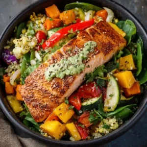 This Roasted Salmon Veggie Bowl is a simple, nourishing, and flavorful meal that brings together roasted goodness and fresh ingredients. Whether for dinner or meal prep, it’s a reliable recipe that delivers both taste and convenience.