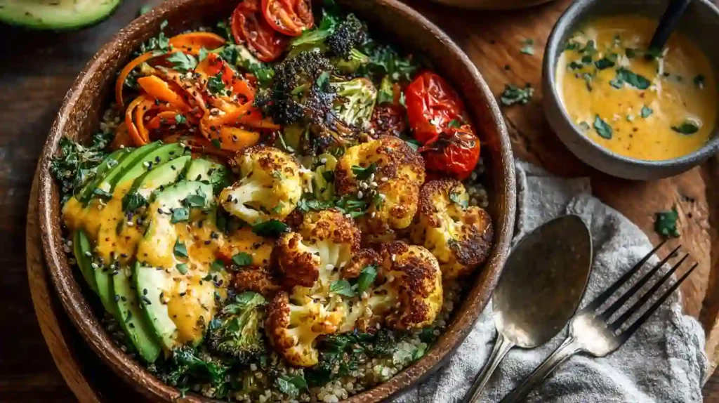 Sweet potatoes or roasted broccoli also work beautifully in this bowl.