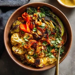 These Roasted Veggie Glow Bowls combine roasted vegetables, protein-rich quinoa, and creamy avocado in one hearty dish. The roasted cauliflower and carrots add a warm, caramelized flavor while the fresh kale and pumpkin seeds bring texture and nutrition.
