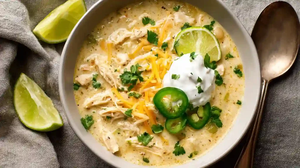 This Keto White Chicken Chili is a creamy, comforting low-carb soup packed with tender shredded chicken, warm spices, green chiles, and melted cheese. Unlike traditional chili, this version skips the beans to keep it keto-friendly while still delivering rich flavor and a hearty texture.