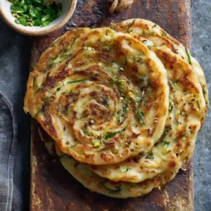 These Scallion Pancakes are crispy on the outside, chewy on the inside, and packed with fragrant green onions and warm spices. This classic Chinese flatbread is pan-fried to golden perfection and makes a delicious breakfast, snack, or side dish. With flaky layers and bold flavor, homemade scallion pancakes are always worth it.