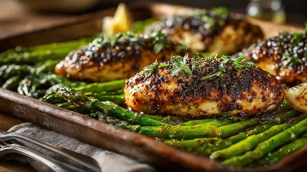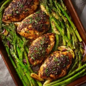 This recipe combines convenience and taste in one pan. The balsamic marinade adds a tangy depth, while the roasted asparagus brings freshness and texture. It’s quick to prepare, easy to clean up, and ideal for family dinners or meal prep.