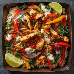 Sheet Pan Chicken Fajita Bowls are a flavorful, healthy, and easy one-pan meal perfect for busy weeknights. Packed with seasoned chicken, roasted vegetables, and a creamy lime yogurt sauce, this dish brings bold fajita flavors with minimal cleanup.