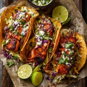 These Sheet Pan Chipotle Salmon Tacos are quick, colorful, and incredibly satisfying. The salmon roasts in the oven with smoky chipotle, sweet honey, and warm spices, creating juicy bite-sized pieces that pair beautifully with fresh toppings.