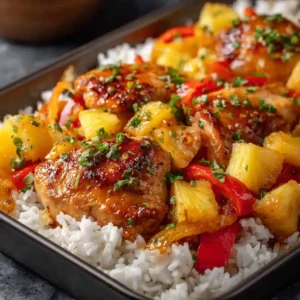 If you’re craving a quick, vibrant dinner packed with tropical flavor, this Sheet Pan Hawaiian Chicken is exactly what you need. Juicy chicken breasts, colorful bell peppers, red onion, and fresh pineapple roast together in a sweet and savory glaze that caramelizes beautifully in the oven. It’s simple, family-friendly, and perfect for busy weeknights.