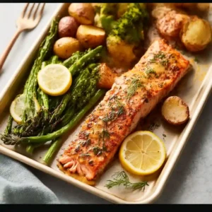 This Sheet Pan Honey Mustard Salmon is all about convenience and flavor. The combination of honey and mustard creates a rich glaze that caramelizes beautifully in the oven. Everything cooks on one pan, making cleanup quick and easy. It’s a family-friendly meal packed with protein, vegetables, and comforting textures.