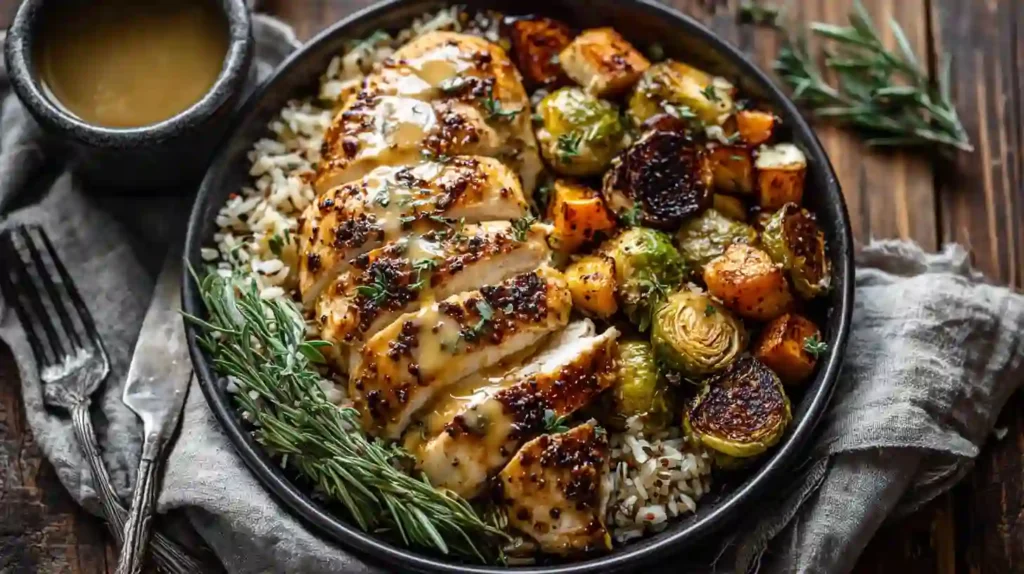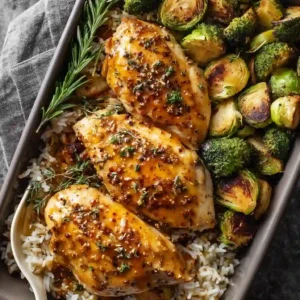 This sheet pan maple dijon chicken is incredibly simple yet packed with flavor. Everything cooks on one pan, making cleanup effortless. The combination of tender chicken, roasted sweet potatoes, and crispy Brussels sprouts makes it a wholesome, family-friendly meal.