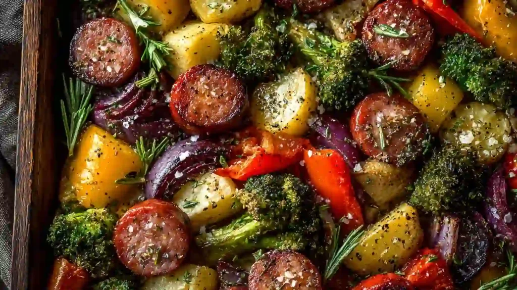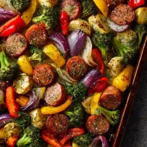 This Sheet Pan Sausage and Vegetables recipe is quick, hearty, and incredibly easy to prepare. Everything cooks together on one sheet pan, allowing the vegetables to roast and develop rich flavor while the sausage becomes perfectly browned. It’s a flexible recipe that works with different vegetables and herbs, making it ideal for meal prep or simple family dinners.