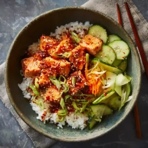 These Spicy Salmon Rice Bowls are quick to prepare and packed with vibrant flavors. The salmon is coated in a spicy, savory sauce while the rice and fresh vegetables balance the heat. It’s a wholesome, customizable meal that feels both comforting and exciting.