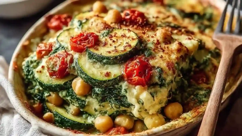 Easy Spinach Zucchini Chickpea Bake