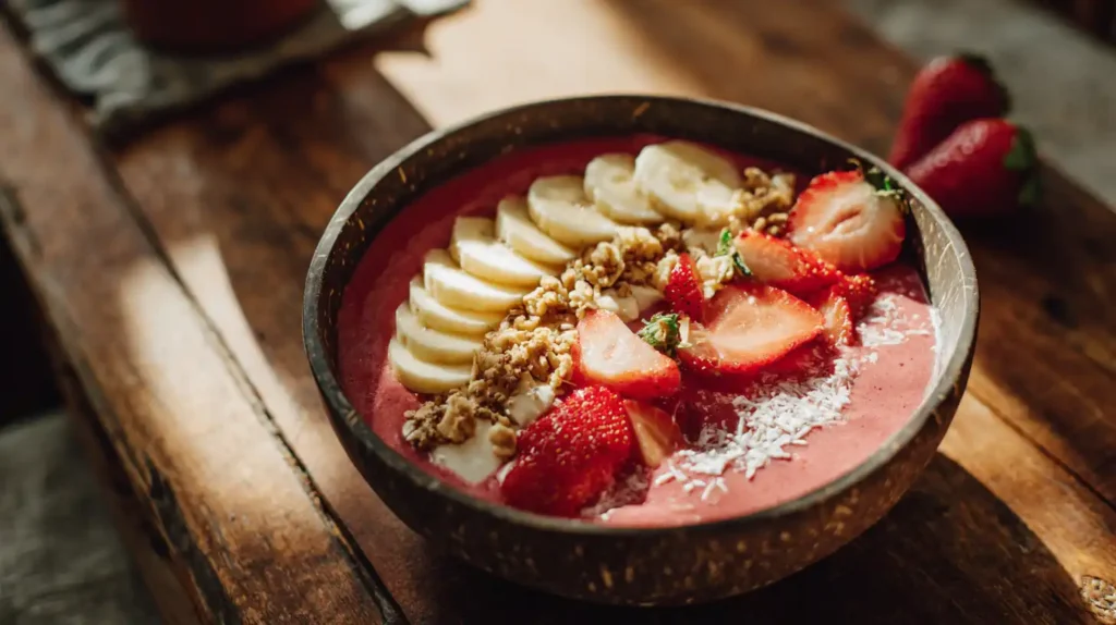 This recipe is simple, quick, and incredibly satisfying. The natural sweetness of strawberries and bananas creates a delicious flavor without added sugar. It’s family-friendly, customizable with your favorite toppings, and perfect for both kids and adults. Plus, it’s a great way to enjoy a healthy smoothie bowl that feels like a treat.