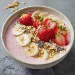 This Strawberry Banana Smoothie Bowl is quick, healthy, and incredibly satisfying. It’s thick, spoonable, and customizable with your favorite toppings. The combination of strawberries and banana creates a naturally sweet flavor that both kids and adults enjoy. Plus, it’s perfect for meal prep or a post-workout boost.