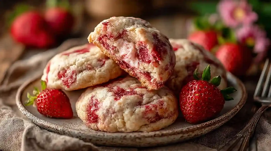 Strawberry Cheesecake Cookies are soft, buttery cookies filled with creamy cheesecake and swirled with homemade strawberry jam. These bakery-style cookies combine the richness of cheesecake with the sweetness of strawberries in every bite.