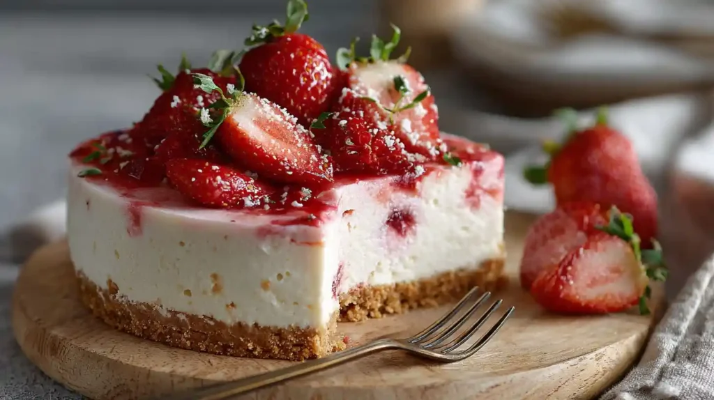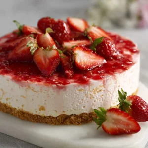 This Strawberry Cheesecake Easy No Bake Recipe is smooth, creamy, and packed with fresh strawberry flavor. It requires no oven, making it simple and stress-free. The texture is light yet indulgent, and it’s perfect for family desserts, gatherings, or special occasions.