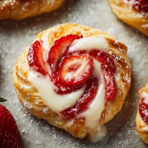 These Strawberry Cream Cheese Danishes deliver flaky layers, creamy filling, and fresh fruit flavor in every bite. Simple to make and stunning to serve, they’re the perfect treat for relaxed mornings or elegant brunches.