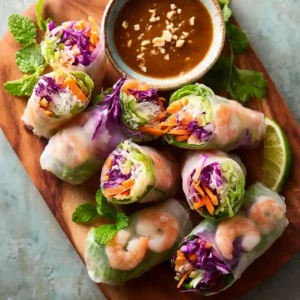 These Summer Rolls with Shrimp are fresh, vibrant, and packed with crisp vegetables and herbs, all wrapped in delicate rice paper. Paired with a rich peanut hoisin sauce, they’re the perfect light and refreshing meal for warm days.