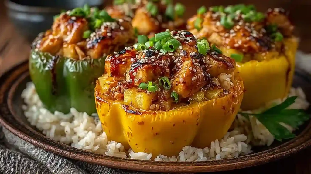 Teriyaki Pineapple Chicken & Rice Stuffed Peppers