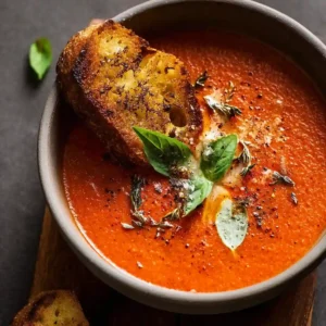 This Tomato Soup is a creamy, comforting dinner perfect for winter nights. Made with roasted tomatoes and mellow roasted garlic, this easy soup delivers deep flavor with minimal effort, making it ideal for cozy family dinners or simple weeknight meals.