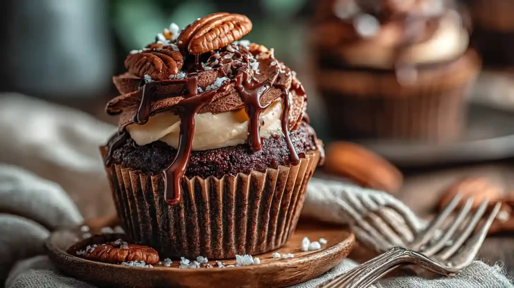 These Turtle Chocolate Cupcakes are rich, indulgent, and layered with gooey caramel pecan filling, moist chocolate cake, silky ganache, and salted caramel cream cheese frosting. If you love the classic chocolate, caramel, and pecan combination, this bakery-style dessert brings it all together in one unforgettable bite.