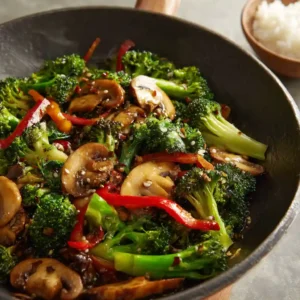 This Vegan Broccoli and Mushroom Stir Fry is a quick, healthy, and flavor-packed meal made with crisp vegetables and a glossy sesame soy sauce. Ready in minutes and made in one pan, it’s the perfect plant-based dinner for busy weeknights.