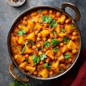 This Vegan Potato and Chickpea Curry is a comforting, flavor-packed dish made with warming spices, tender potatoes, and hearty chickpeas simmered in a rich tomato-based sauce. It’s simple, nourishing, and perfect for an easy weeknight dinner or meal prep.